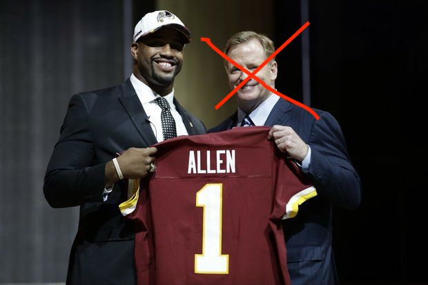 Hold on to your butts. I said this before and I’ll say it again – the Redskins could not mess up this pick if they closed their eyes and picked the best defensive player available on board.  Furthermore, they could not mess up this pick if they went ANY of the top 10 defensive lineman. But my God, they get one of the best players in the whole draft fall right into their laps. Getting Allen at #17, where most early mock drafts had him going #2 overall, is a like someone knocking on your door and handing you the keys to a brand new Ford GT40. Now, the Redskins could have taken Reuben Foster here who also happened to fall to #17. However, this was the better pick based on need.